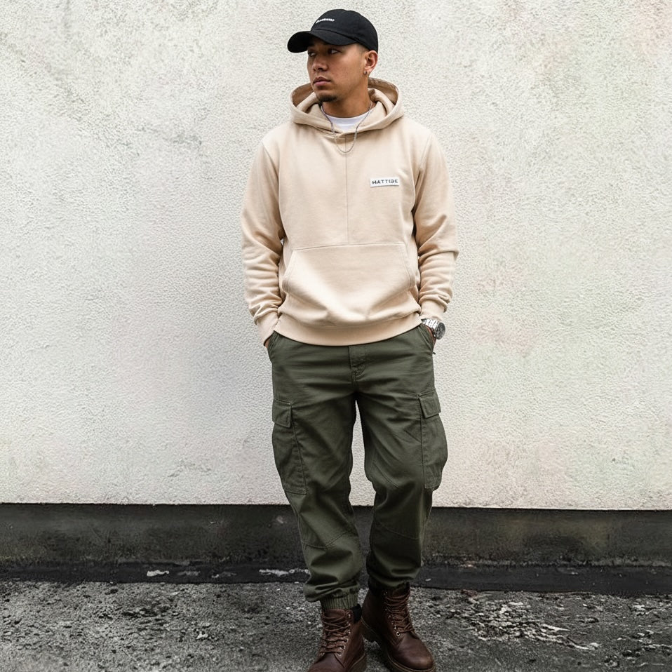 Uszyliśmy ją z wysokogatunkowej dzianiny bawełnianej (97%) wzmocnionej elastanem (3%). To nie jest zwykły materiał. To Twoja baza – dająca swobodę ruchów, gdy musisz działać, i miękkość, gdy potrzebujesz chwili oddechu. Głęboki kaptur pozwala odciąć się od hałasu i skupić na misji. Kieszeń kangurka to Twój podręczny schowek na to, co niezbędne.